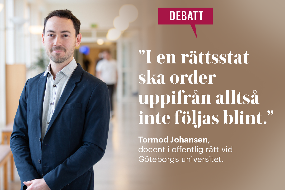 I en rättsstat ska de politiska besluten inte följas blint, skriver Tormod Johansen, docent i offentlig rätt. Han lyfter fram att statsförvaltningen har en skyldighet att pröva om beslut och lagar lever upp till konstitutionella krav och menar att varje tjänsteperson har ansvar för att skydda rättstaten och de demokratiska värdena.