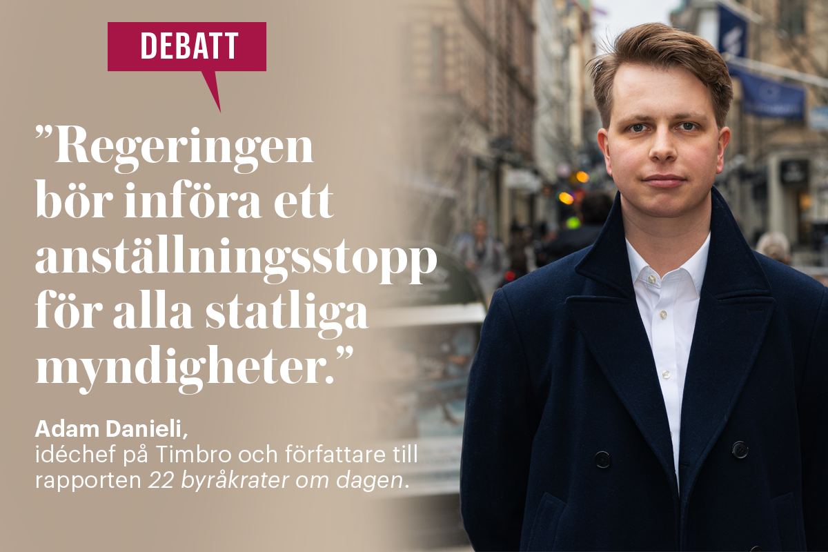 Den statliga förvaltningen har fler anställda än någonsin, och på några myndigheter har tillväxten varit extrem, skriver Adam Danieli, idéchef på tankesmedjan Timbro. Han uppmanar regeringen att ta kontroll över utvecklingen, införa ett anställningsstopp i staten och gallra bland myndigheter utan tydliga kärnuppgifter.
