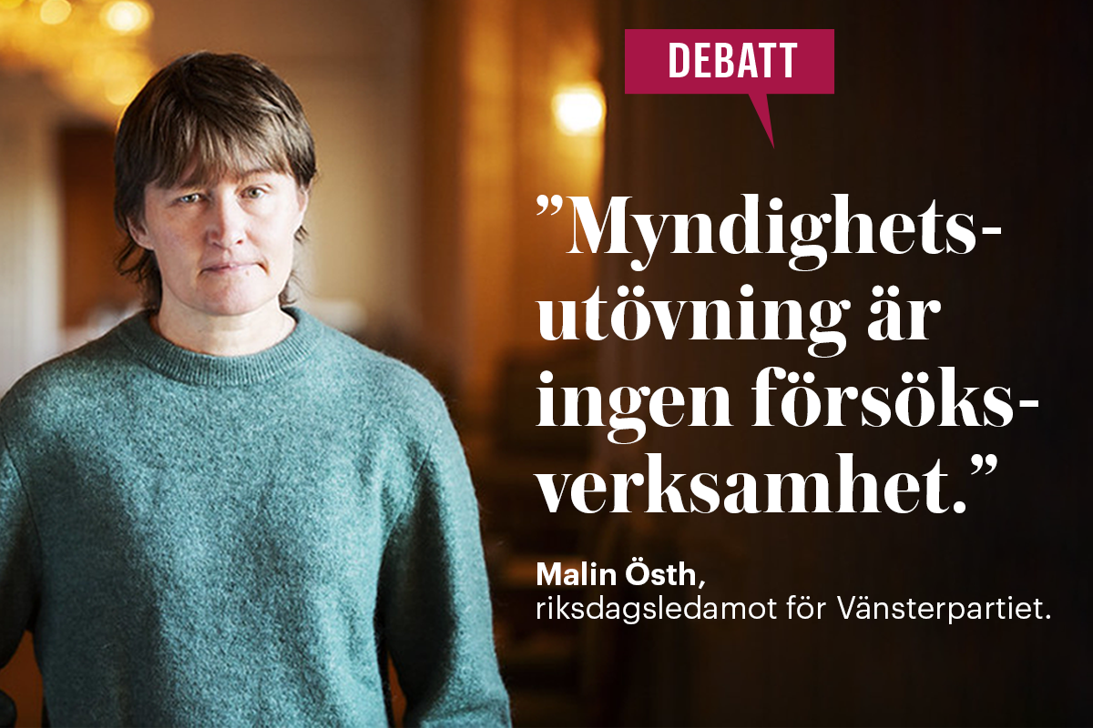 Att, som regeringen gör, framställa AI som en tävling där det viktigaste är att Sverige ska vara ”bäst i världen” är inte seriöst, skriver Malin Östh, riksdagsledamot för Vänsterpartiet. Enligt henne accepterar regeringen att det kommer att bli fel hos myndigheter som hanterar mycket känsliga data, och hon varnar för att det kommer att drabba enskilda människor.