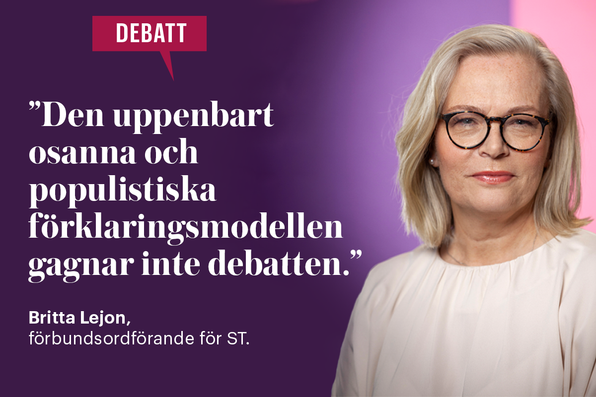 Timbros Adam Danieli sprider en bild av att de statliga myndigheterna sväller utan förklaring, men i själva verket är tillväxten främst ett resultat av politiska satsningar på försvar, polis och rättsväsende, skriver STs förbundsordförande Britta Lejon i en replik. Det behövs en diskussion om hur statsförvaltningen ska organiseras, men den kan inte utgå från premissen att staten är en mörk massa som växer av sig själv, menar hon.
