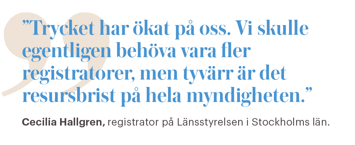 Det märker också Cecilia Hallgren, registrator på Länsstyrelsen i Stockholms län.