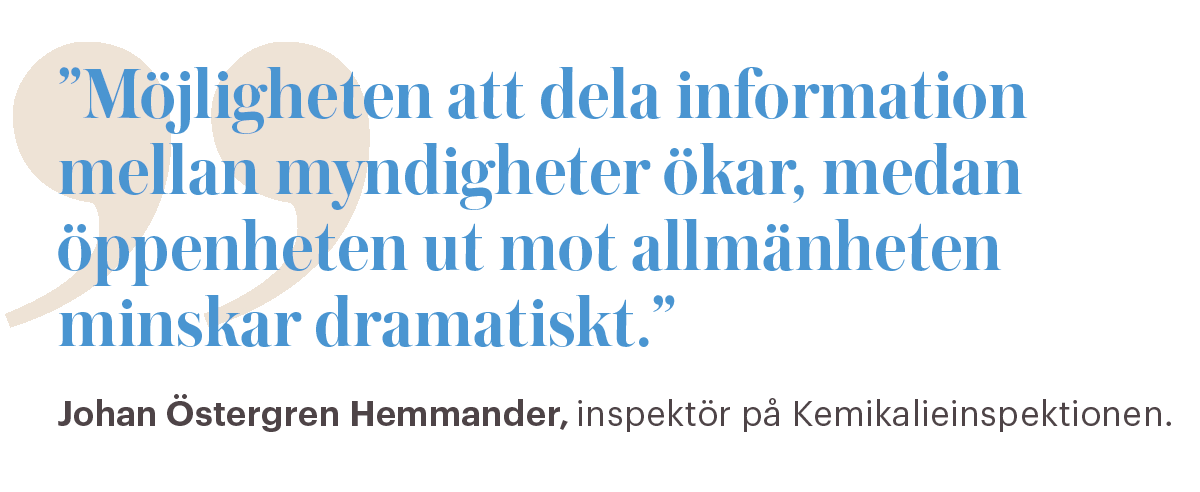 – Jag tycker att fokus ligger väldigt mycket på säkerhetsskydd inom staten i dag, och väldigt lite på offentlighet. Möjligheten att dela information mellan myndigheter ökar, medan öppenheten ut mot allmänheten minskar dramatiskt. Jag anser att det är ganska allvarligt, säger han.