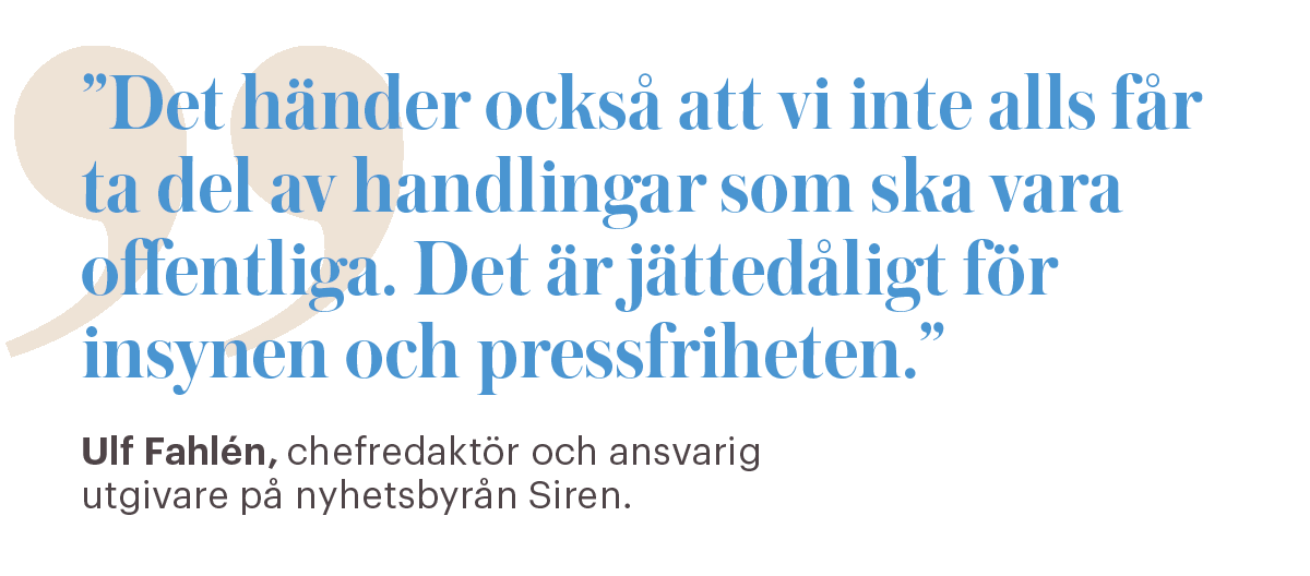 – Det är problematiskt. Dels får vi numera ibland uppgifter med förbehåll, även när det inte finns tydligt juridiskt stöd för det. Men det händer också att vi inte alls får ta del av handlingar som ska vara offentliga. Det är jättedåligt för insynen och pressfriheten, säger han.