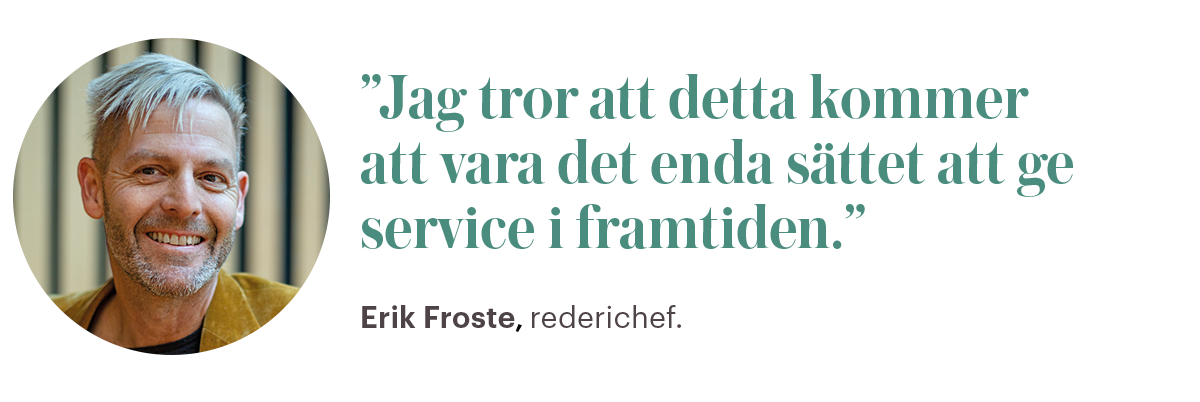 – Jag tror att detta kommer att vara det enda sättet att ge service i framtiden. Men utvecklingen går långsamt och genomsnittsåldern hos oss är hög, så risken att vi behöver säga upp någon är i princip noll, säger han.