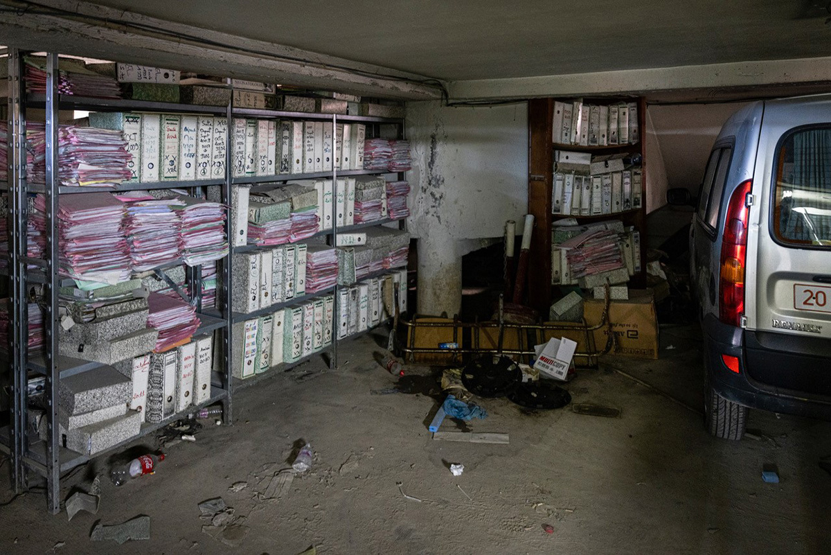 Den låga graden av digitalisering på kontoret märks allra tydligast på den andra sidan av byggnaden. Där finns ett omfattande dokumentarkiv samt hanteringen av in- och utgående post.