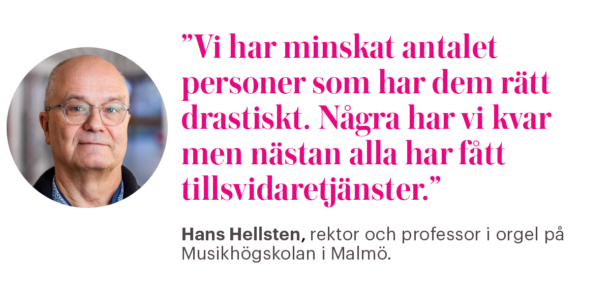 Hans Hellsten, rektor och professor i orgel på Musikhögskolan i Malmö, säger att det var en konsekvens av en ohållbar situation. Under hela 2010-talet hade skolan anställt ”väldigt många” lärare med stöd av undantaget i högskoleförordningen.