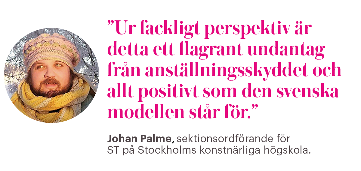 – Men ur fackligt perspektiv är detta ett flagrant undantag från anställningsskyddet och allt positivt som den svenska modellen står för, säger han.