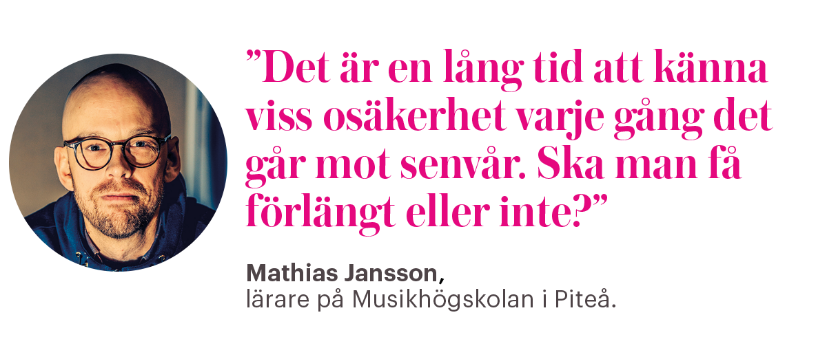 – Det är en lång tid att känna viss osäkerhet varje gång det går mot senvår.Ska man få förlängt eller inte? säger Mathias Jansson.