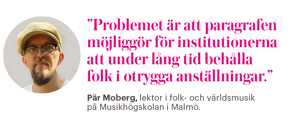 – Problemet är att paragrafen möjliggör för institutionerna att under lång tid behålla folk i otrygga anställningar. Även om lärare inte vill vara där tillfälligt, utan vill ha fast jobb, så kan de inte bli inlasade, säger han.