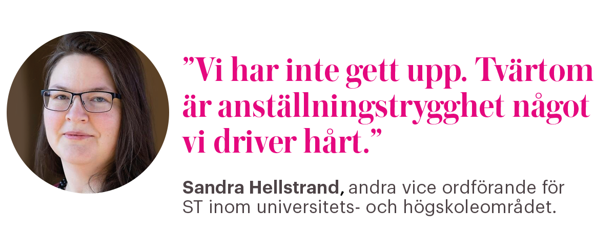 – Men vi har inte gett upp. Tvärtom är anställningstrygghet något vi driver hårt, säger Sandra Hellstrand.
