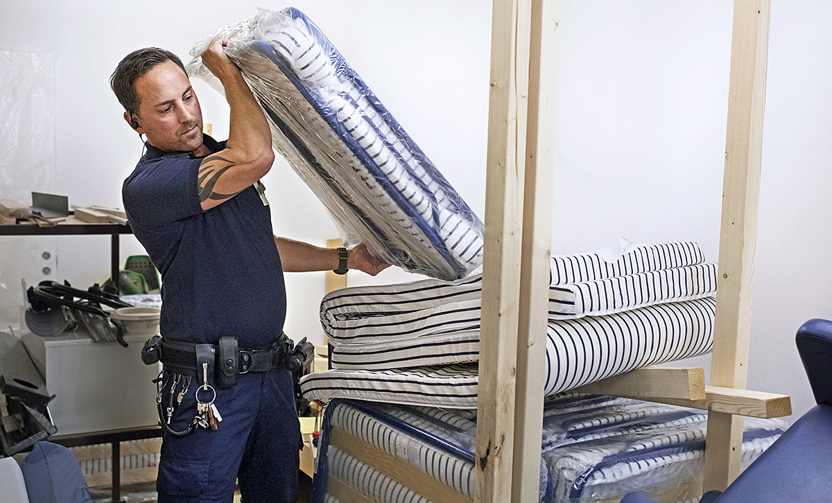 Höga och kamerabevakade dubbla taggtrådsstängsel omger Fosieanstalten, belägen i ett industriområde i de sydöstra delarna av Malmö. Innanför murarna, i ett förrådsrum, står kriminalvårdaren Hannes Henricson och staplar tältsängar från Ikea ovanpå varandra. Vissa är så nya att plasten fortfarande sitter kvar. Det råder nämligen akut platsbrist på anstalter över hela landet. Fosieanstalten är en av de enheter som gjort om vissa av sina celler till dubbelrum, så kallade beredskapsplatser, för att snabbt kunna ta emot fler dömda. Enkelsängar har bytts ut mot våningssängar. De nyintagna hamnar – om det inte finns särskilda skäl – först i ett sådant dubbelrum.