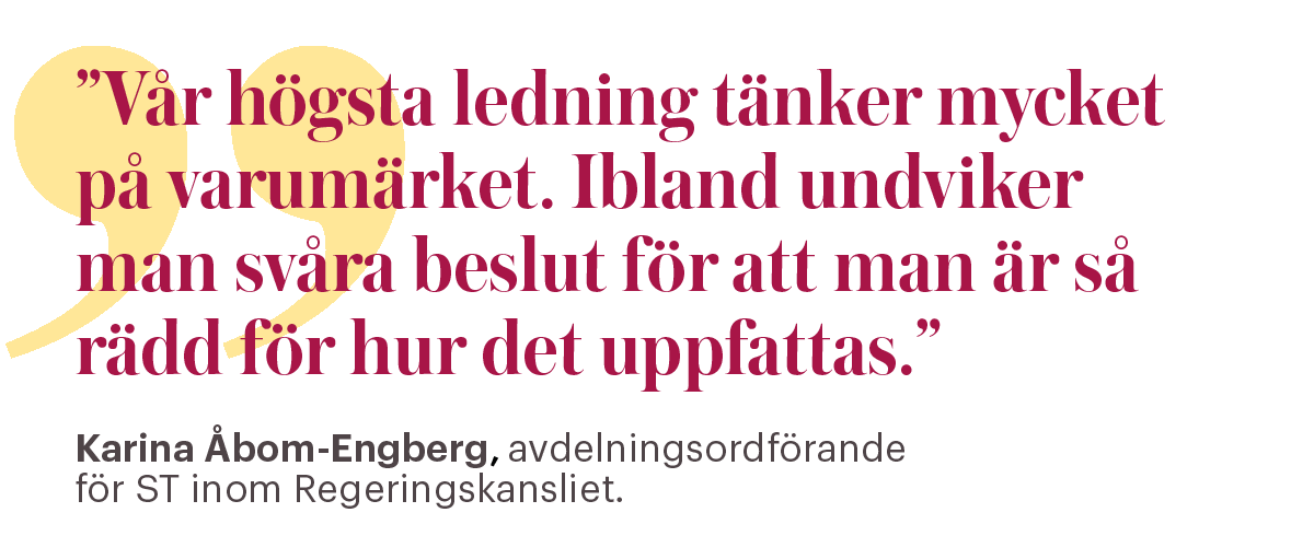 – Vår högsta ledning tänker mycket på varumärket. Ibland undviker man svåra beslut för att man är så rädd för hur det uppfattas, säger hon.