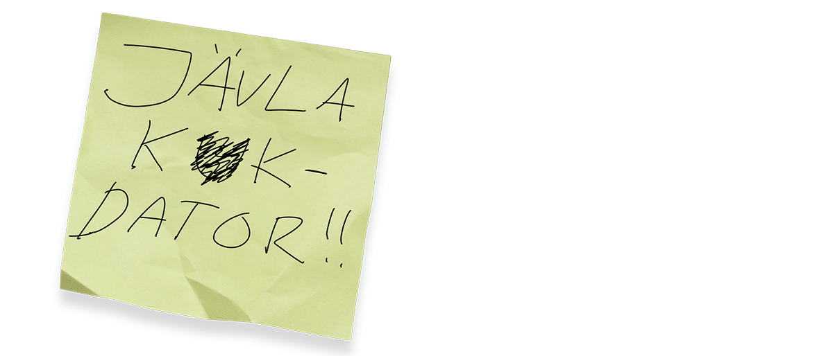 – Den där lejonmanen av post-it-lappar var den allra första bildidén vi fick till vår utställning, och jag tror det är lätt att känna igen sig i den situationen, alla dessa komihåglappar. När vi sedan gjorde loggan till hela det här projektet bestämde vi oss för att utgå från en handskriven post-it-lapp där det står ”Jävla k*kdator!”, säger Marinette Fogde, forskningschef på Arbetets museum i Norrköping och projektledare för utställningen.