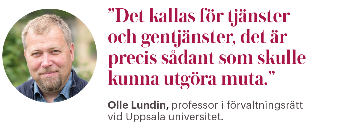 – Det kallas för tjänster och gentjänster, det är precis sådant som skulle kunna utgöra muta. Det är så långt ifrån statstjänstemannarollen man kan komma, säger han.
