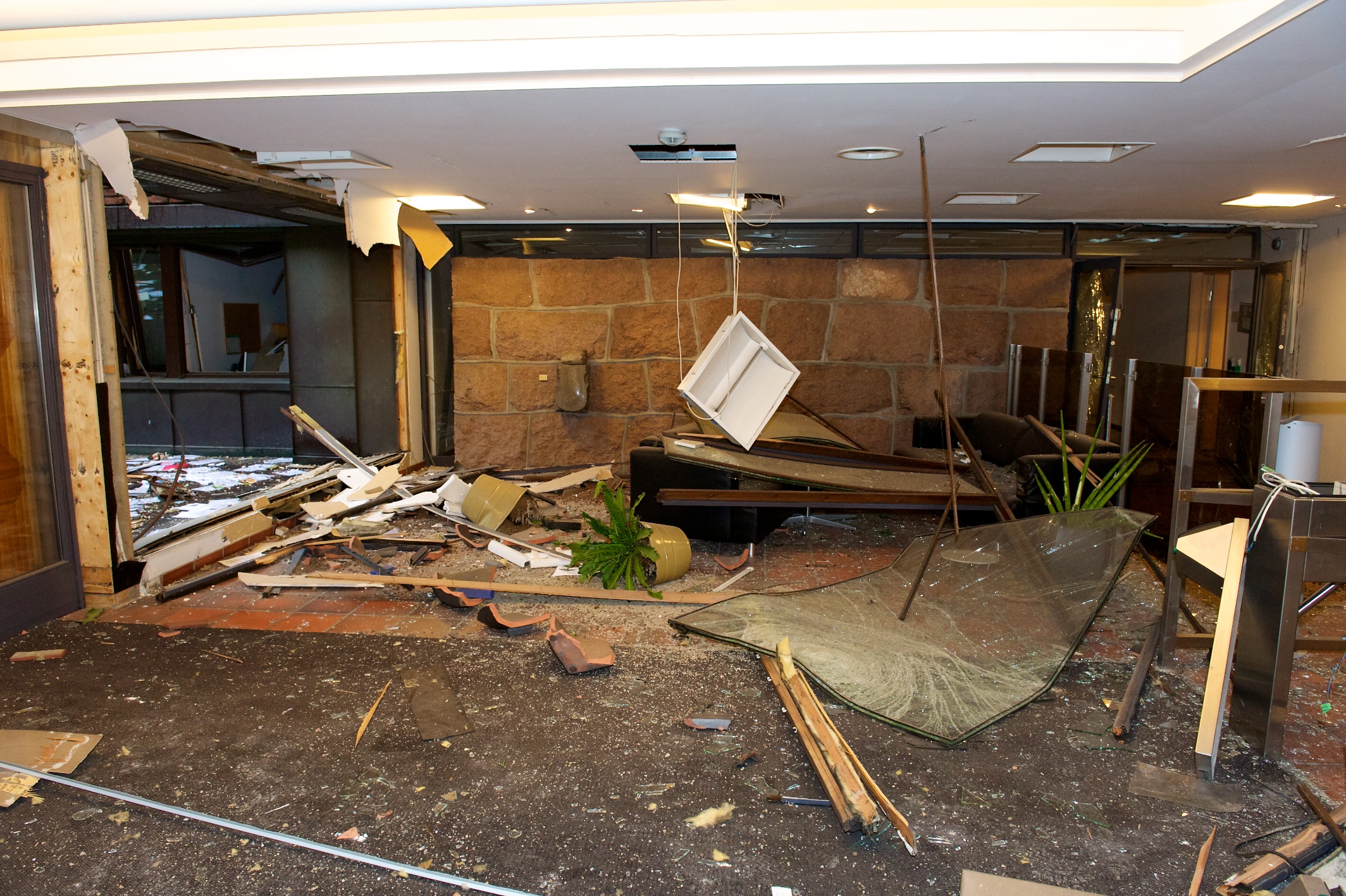 Gatorna fylldes av larm från de trasiga fastigheterna.