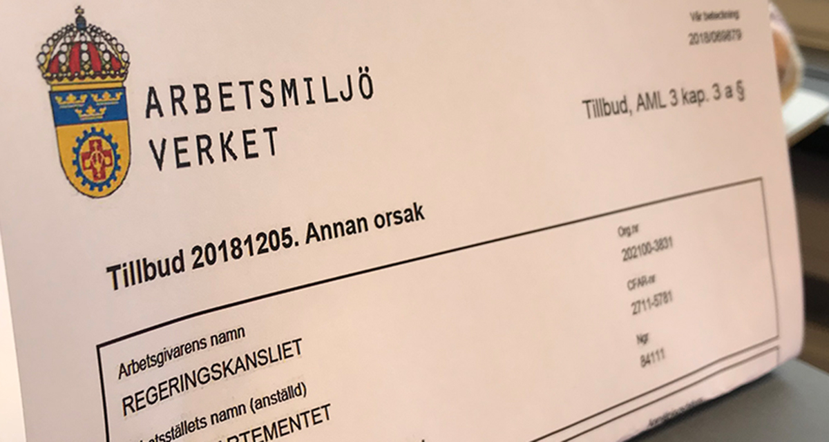 Efter Arbetsmiljöverkets inspektion av den psykosociala arbetsmiljön i augusti förra året fick departementet kraftig kritik. Vid sin inspektion beslutade Arbetsmiljöverket att arbetsgivaren ska undersöka en rad faktorer i arbetsmiljön, såsom krav kontra resurser, psykiskt påfrestande arbetssituationer, arbetstider och faktorer som kan ge upphov till kränkande särbehandling.