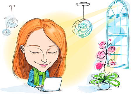 För att skapa ett vackert och funktionellt kontor tycker hon att man ska börja med en inventering och kartlägga vilken typ av arbete som ska utföras i lokalerna. I steg två föreställer man sig hur lokalerna kan användas för att skapa den typ av arbetsplats som behövs. Hon beskriver hur hon själv arbetar: