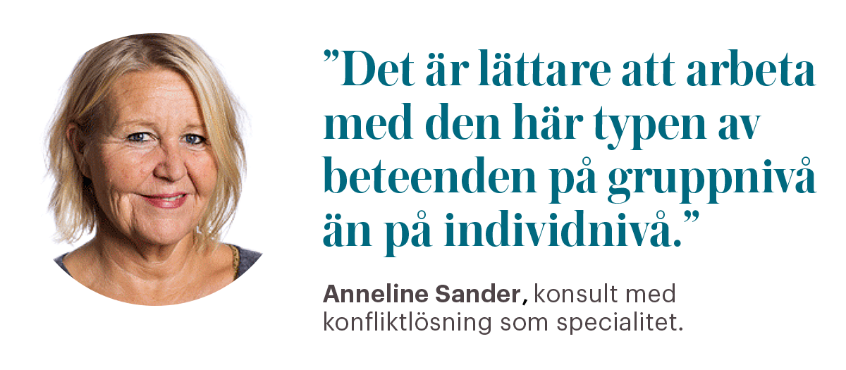 Ganska ofta beror passiv aggressivitet på att finns en norm i arbetsgruppen som tillåter beteendet, menar Anneline Sander.