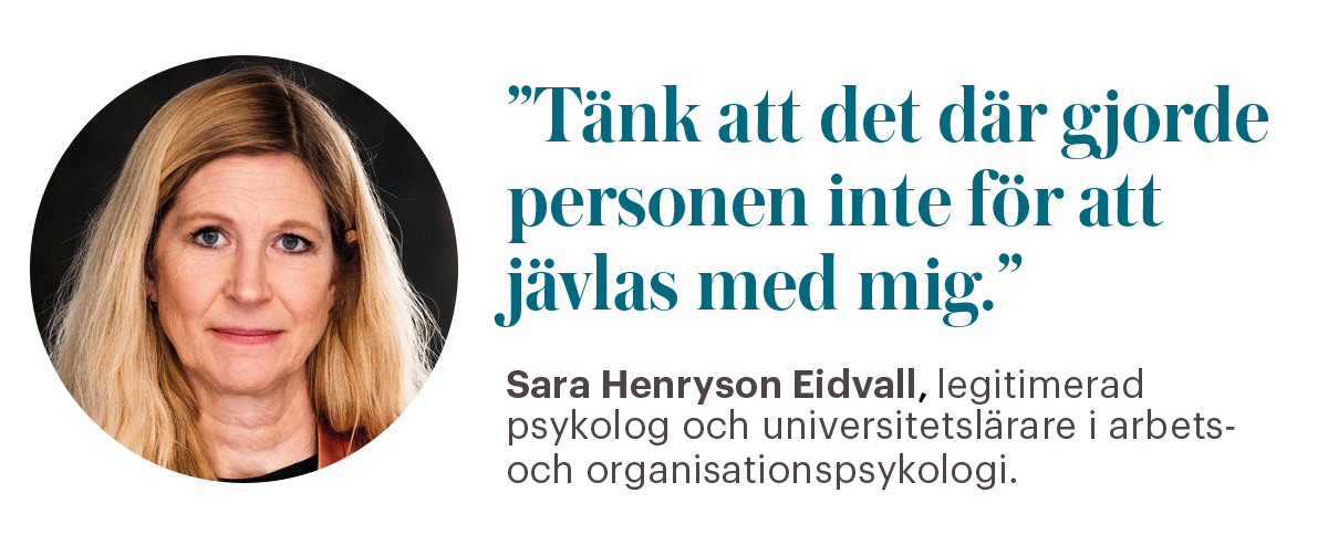 – Då hinner man tänka efter, backa lite och kan fråga vad personen egentligen vill, säger Sara Henryson Eidvall.