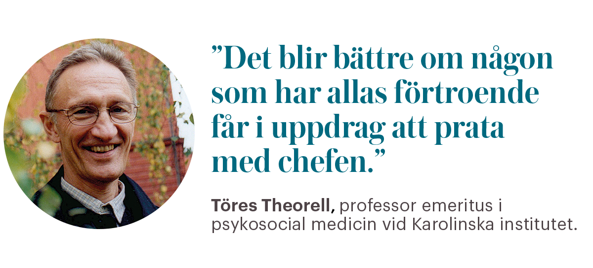 – Risken är att det sätter i gång chefens försvarsmekanismer. Det blir bättre om någon som har allas förtroende får i uppdrag att prata med chefen, säger Töres Theorell.
