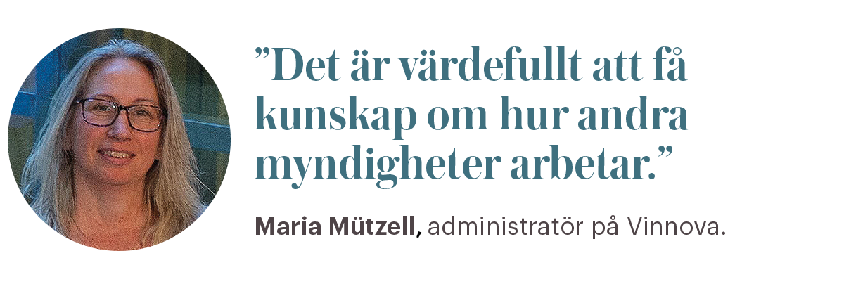 Maria Mützell, som är administratör på Vinnova, har deltagit i nätverksträffarna sedan ett år tillbaka och tycker att de ger insikter som är till stor nytta.