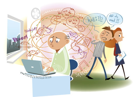 – Störande samtal och prat i närheten är något av det som vi uppfattar som mest stressande och störande för koncentrationen, enligt våra undersökningar. Det beror i hög grad på att vi är programmerade av naturen att uppfatta mänskligt tal som viktigt. Vi reagerar också påtagligt på plötsliga och oregelbundna ljud som dörrar som slår igen, stolar som skrapar och telefoner som ringer.